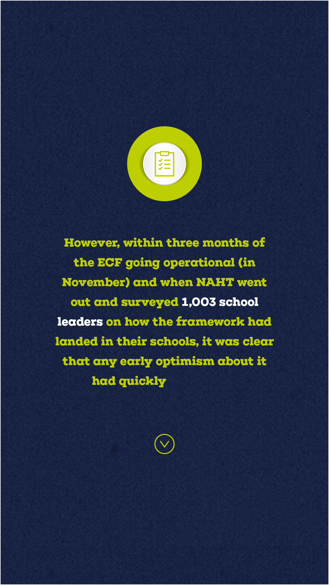 The good news is this is not totally a ‘what went wrong?’ story. The government (arguably unusual for this administration) does appear to have sat up and listened to the concerns raised by NAHT. It is now in the process of revisiting some aspects of the ECF. As Ian puts it: “Through lots of lobbying, lots of discussions and some really quite hard conversations – and by asking our members and because they responded in such numbers – we have been able to persuade the DfE that some change is necessary.”