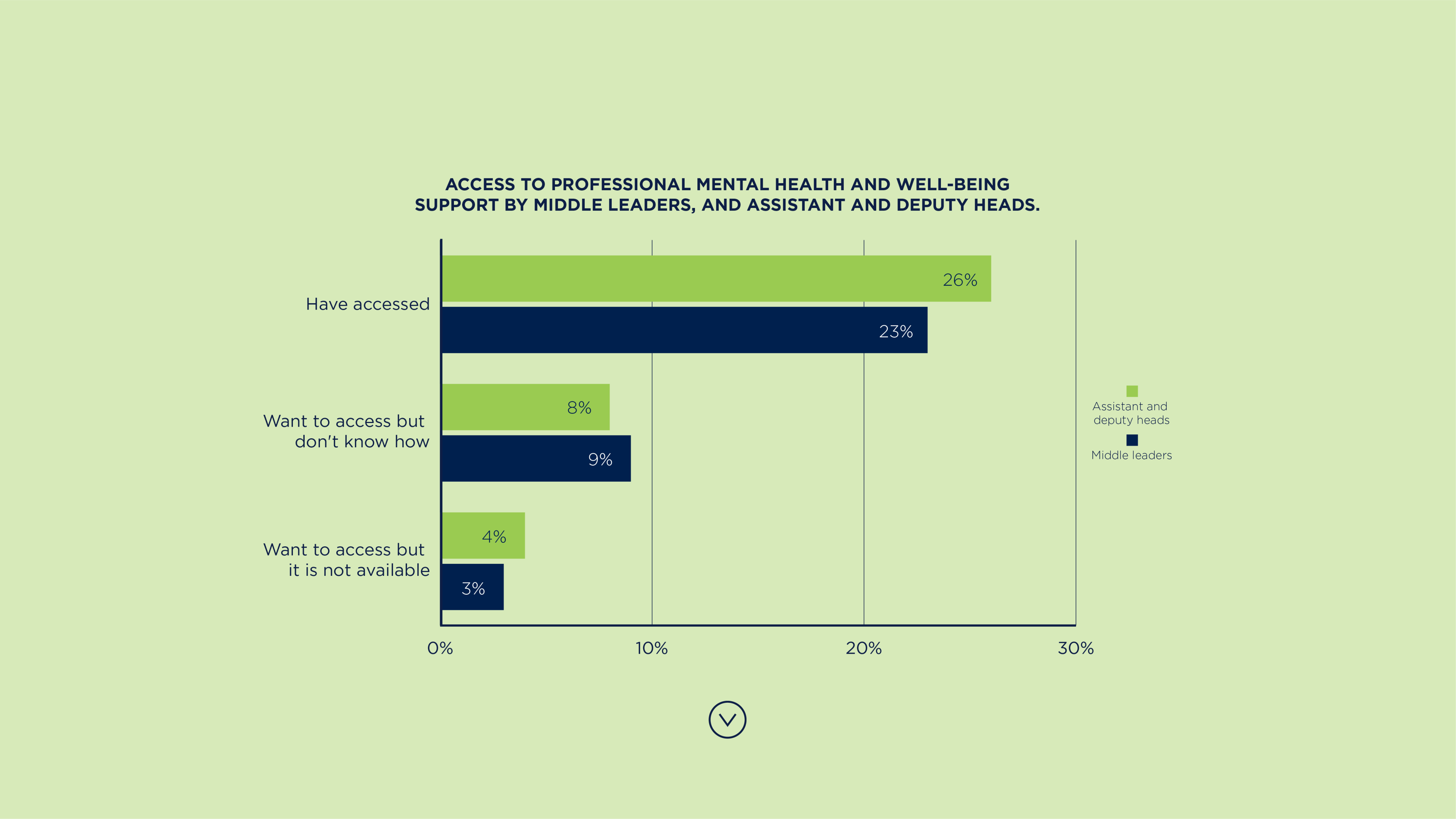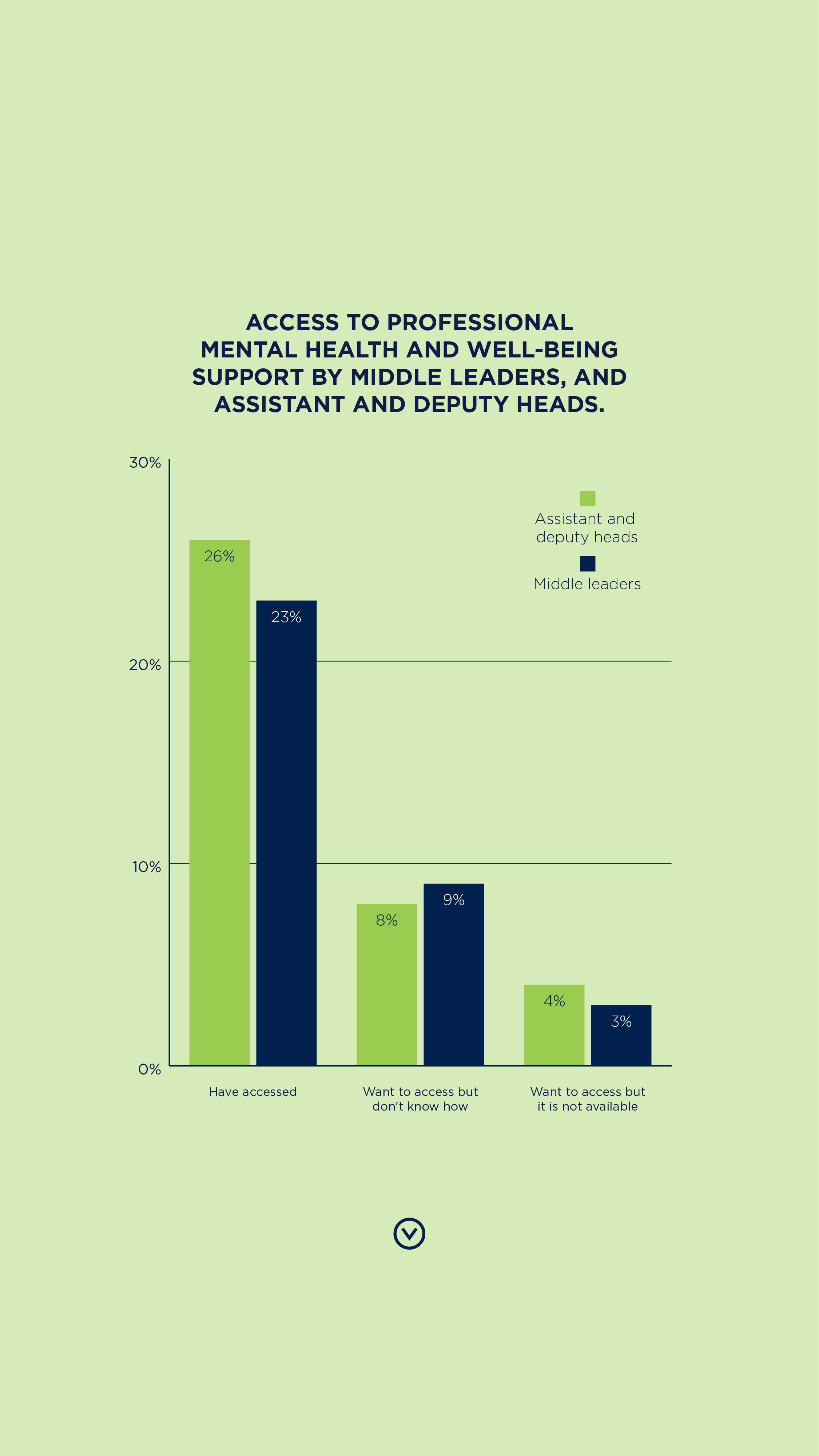 The vast majority (91%) of assistant and deputy heads reported that the mental health support they provide to staff had increased or ‘greatly’ increased over the last three years. More than a third (35%) of middle leaders and 38% of assistant and deputy heads said they had identified a personal need for mental health or well-being support during the past year.