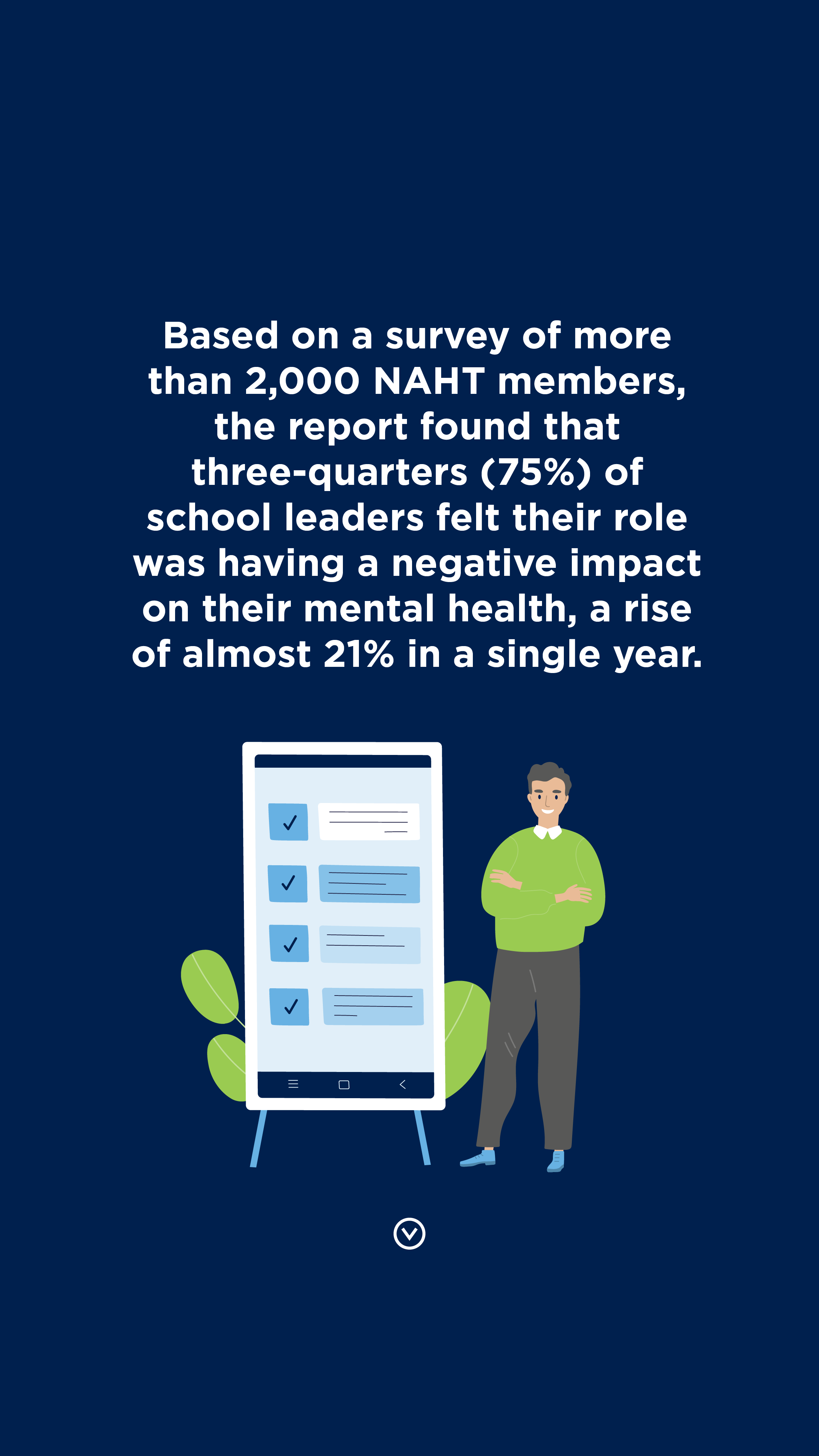 NAHT’s recent report, ‘Fixing the leadership crisis: time for change’, highlighted how a decade of erosion of pay and recognition and of unsustainable workload and high-stakes accountability – together with the intense pressures of leading through a pandemic – is all taking a terrible toll on head teachers’ and school leaders’ health and well-being.